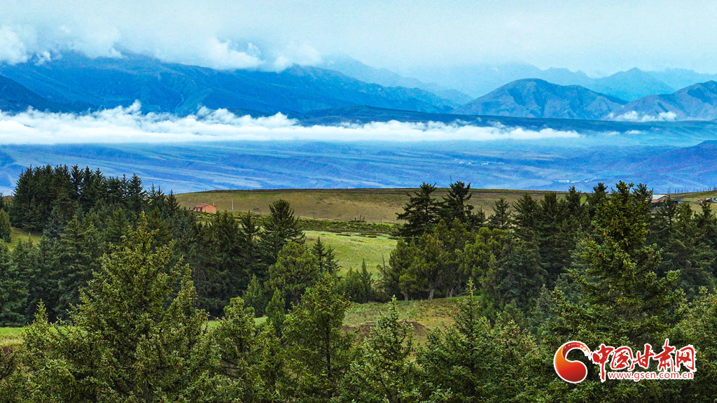 6月21日清晨,位于張掖市肅南裕固族自治縣境內(nèi)的祁連山國家公園,細(xì)雨初歇。云海如傾瀉的瀑布,在峰巒間翻涌,座座山峰時(shí)隱時(shí)現(xiàn)。朦朧的雪山與蒼松翠柏的原始森林、一望無際的碧綠草原,共同鋪展成這幅雨后的人間絕美畫卷。
