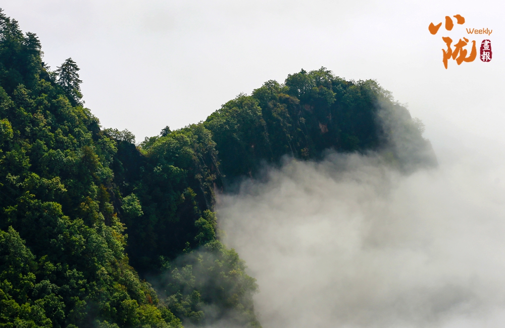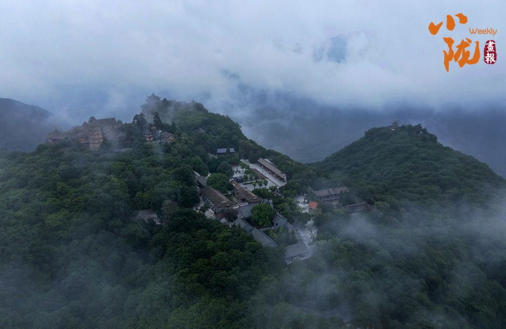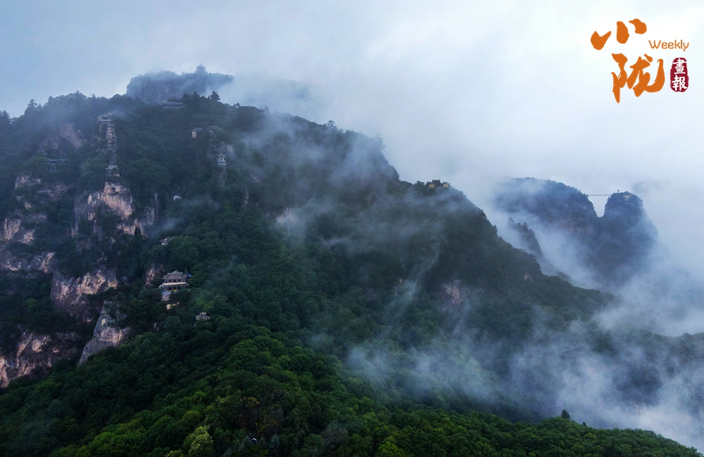 雨后初霽,云霧自幽谷翻涌升騰,如浪濤席卷峰巒,遠處山影在云濤中若隱若現(xiàn),恍若蓬萊仙島。霧氣氤氳間,林海、亭閣若隱若現(xiàn),恰似一幅流動的水墨丹青。