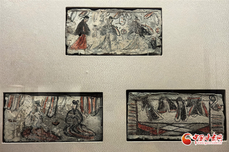 駱駝城、許三灣墓葬出土的壁畫磚,內(nèi)容豐富多元,涵蓋了烏堡樓院、歌舞宴筵、車馬行旅、品茗清談、六搏游戲、圣賢故事等諸多方面。