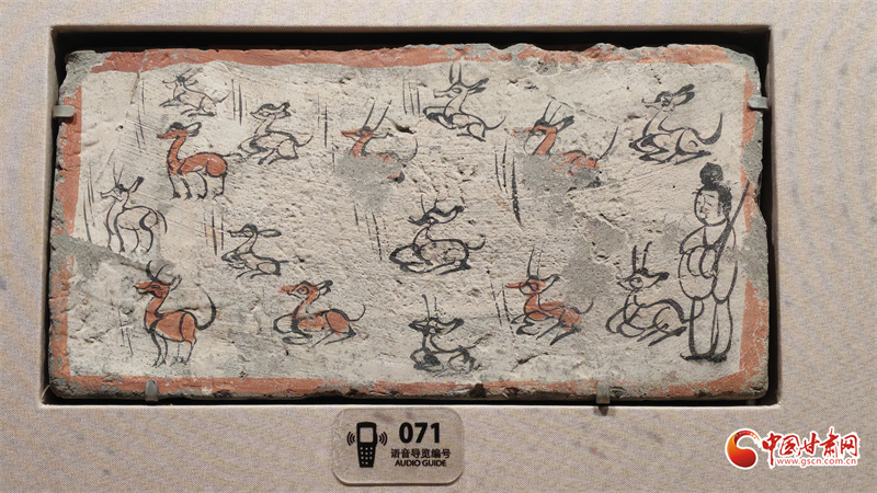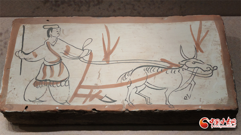 在博物館的“古冢丹青——高臺魏晉十六國時期墓葬壁畫藝術(shù)陳列”展廳里,記者看到,《二牛耕地畫像磚》生動再現(xiàn)了當(dāng)時的農(nóng)耕技術(shù):兩頭耕牛架著直轅犁,后隨的男子一手扶犁一手揚鞭,展現(xiàn)了典型的“二牛抬杠”耕作方式。《牧鹿圖壁畫磚》則描繪了古人放牧鹿群的獨特場景,為研究當(dāng)時的畜牧業(yè)發(fā)展提供了珍貴資料。
