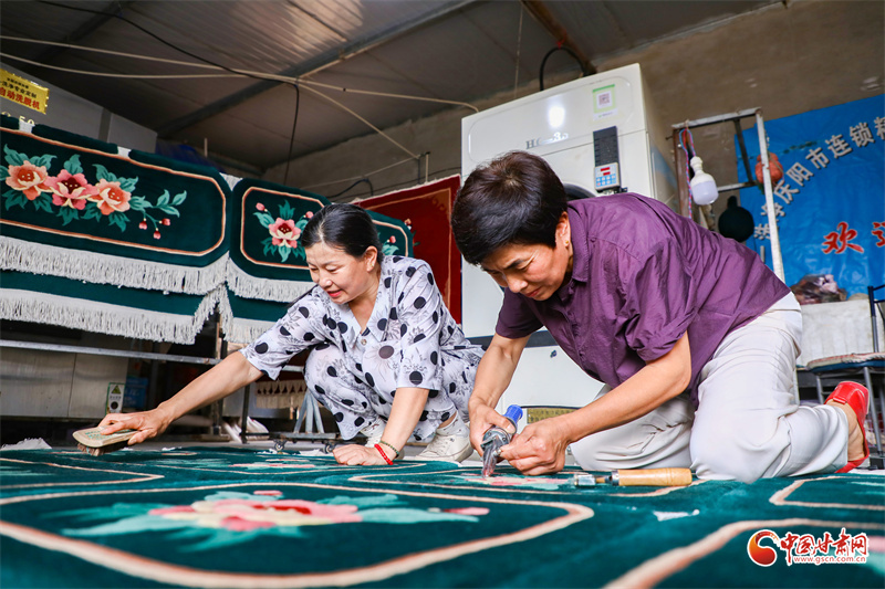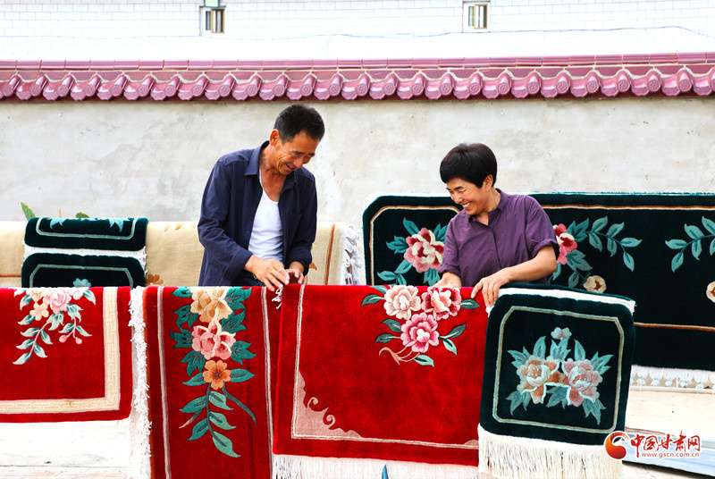 手工地毯,是環(huán)縣非物質(zhì)文化遺產(chǎn)之一,已有近半個(gè)世紀(jì)的傳承,慕粉萍從事這項(xiàng)技藝也有30多年了。