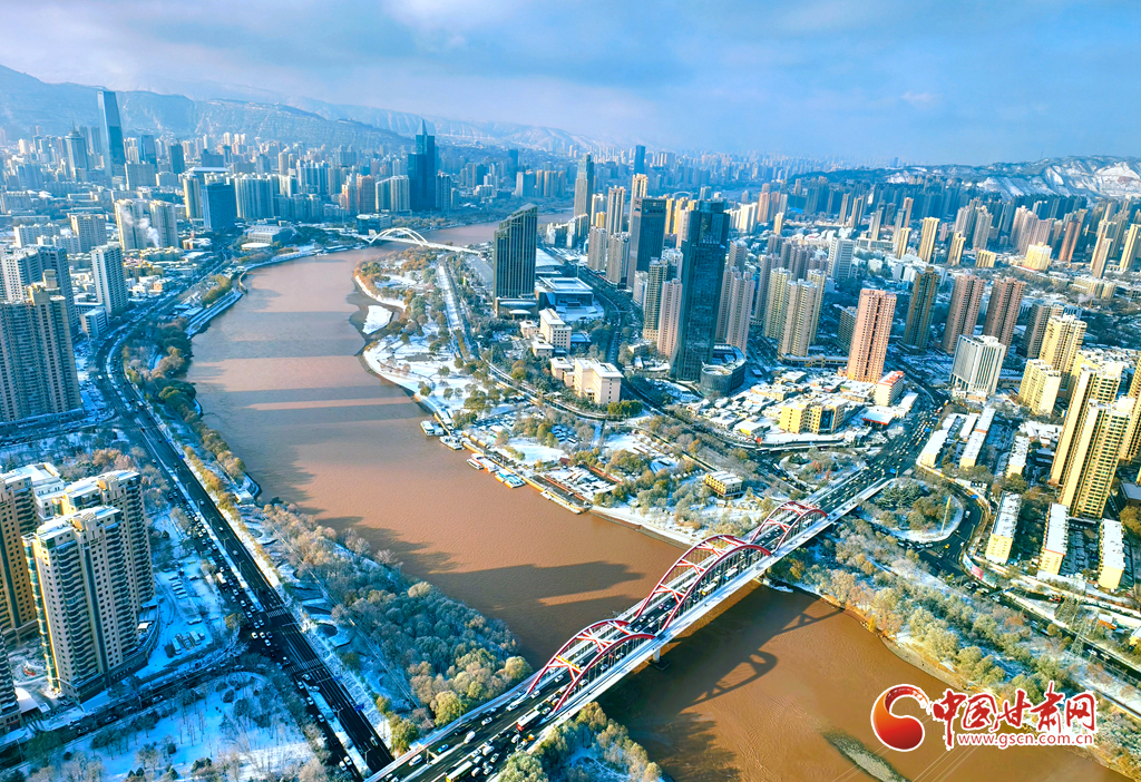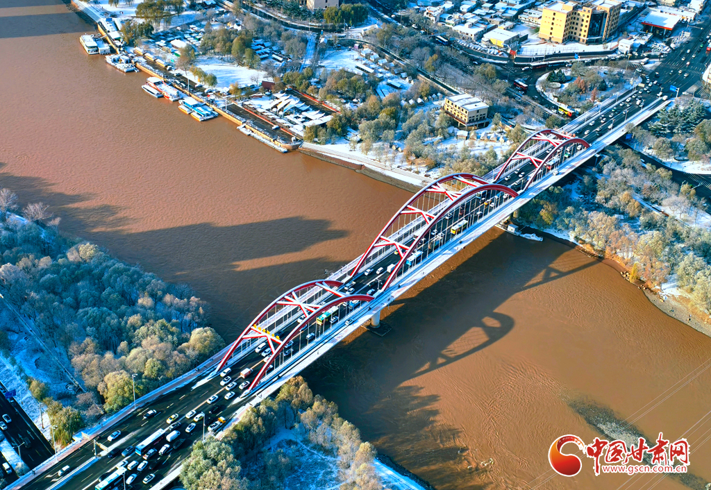 11月24日,今冬的初雪翩然而至,為金城蘭州披上了一襲素雅的白裳。黃河兩岸銀裝素裹,靜謐的河流與皚皚的白雪相映成趣,共同勾勒出一幅冬日里的詩意圖景。