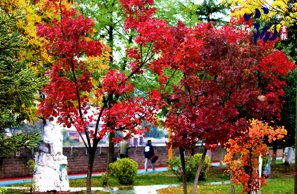 街道上,紅葉滿枝,熱情似火,它們溫柔地綻放,與周邊的其他樹種色彩相媲美,使得初冬的景致更加美麗動人。