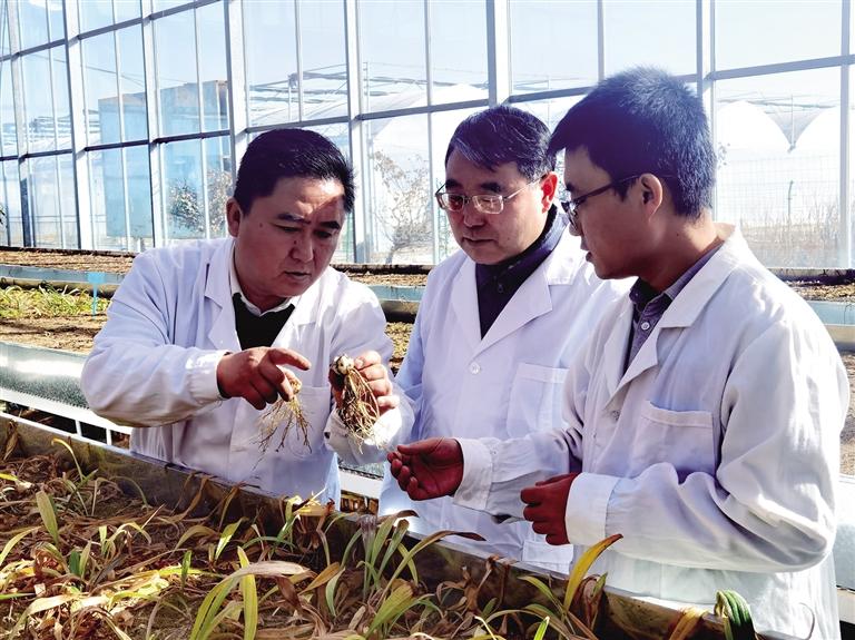 蘭州百合優(yōu)質(zhì)種源高效開發(fā)關(guān)鍵技術(shù)“揭榜掛帥”項(xiàng)目承擔(dān)方查看百合生長情況