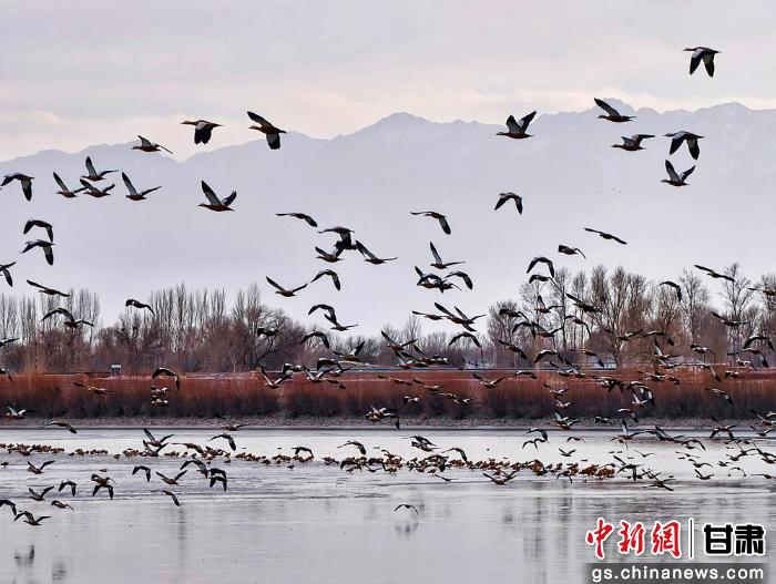 在黑河濕地國(guó)家級(jí)自然保護(hù)區(qū)高臺(tái)段,蜿蜒的河道與開(kāi)闊的水面已成為候鳥(niǎo)的臨時(shí)家園。