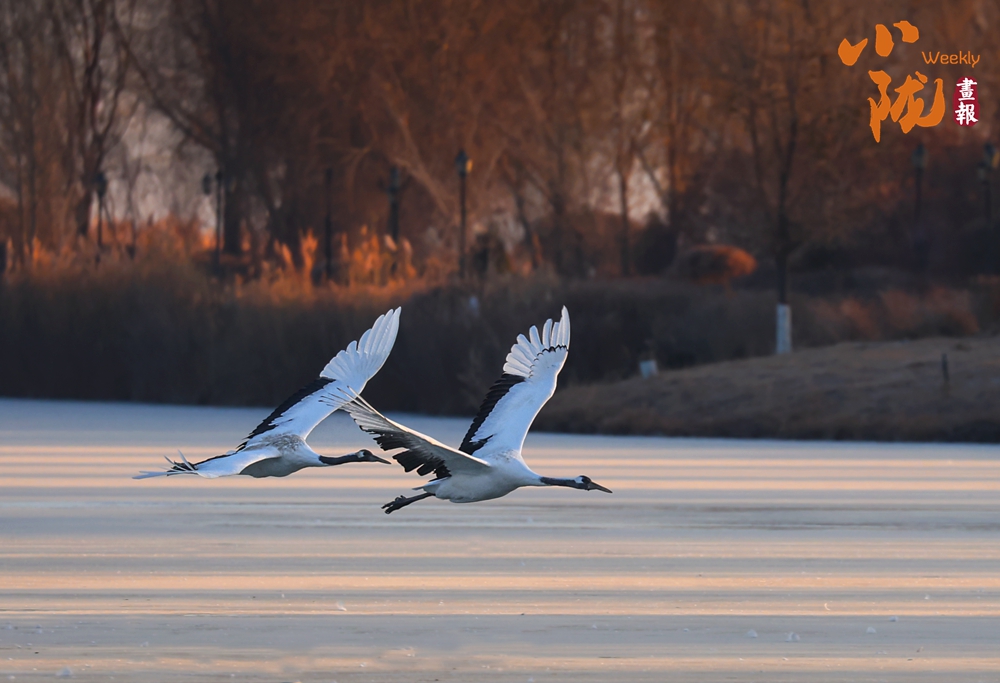 陽光斜照,丹頂鶴昂首振翅,發(fā)出清越的鳴叫,隨即騰空而起,在空中劃出一道弧線。這一幕,不是排練,也不是表演,而是它們生命中最真摯的告白。
