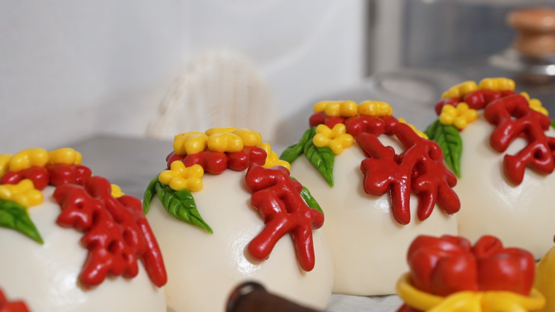 三年前,李艷艷偶然在網(wǎng)上看到花饃制作視頻,第一眼就被那鮮艷的色彩與生動(dòng)的造型吸引。“當(dāng)時(shí)就覺得,這饃怎么這么好看!”李艷艷說(shuō),“我是個(gè)閑不住的人,有了念頭就想試試。”說(shuō)做就做,她隨即遠(yuǎn)赴山東學(xué)習(xí),將這份心動(dòng)從興趣慢慢沉淀為事業(yè)。