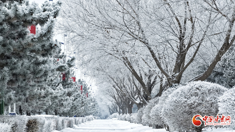 一夜之間,天地銀裝素裹。晶瑩霧凇或綴滿枝頭,或輕覆草木,將道路兩旁幻化成如夢冰雪世界。寒風掠過,霧凇凝霜疊雪,兼具北國壯闊蒼茫與冬日溫柔靜謐。